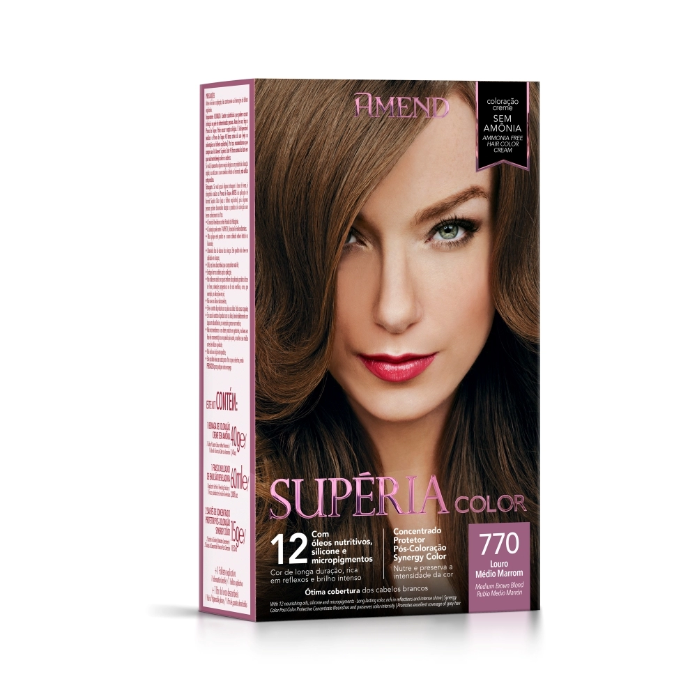 KIT COLORACAO AMEND SUPERIA COLOR S/ AMONIA 770 LOURO MEDIO MARROM