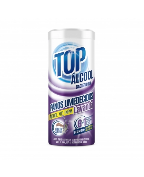Limpeza>ÁLCOOL PANOS UMEDECIDOS LAVANDA 70° INPM TOPLAND POTE C/35UN